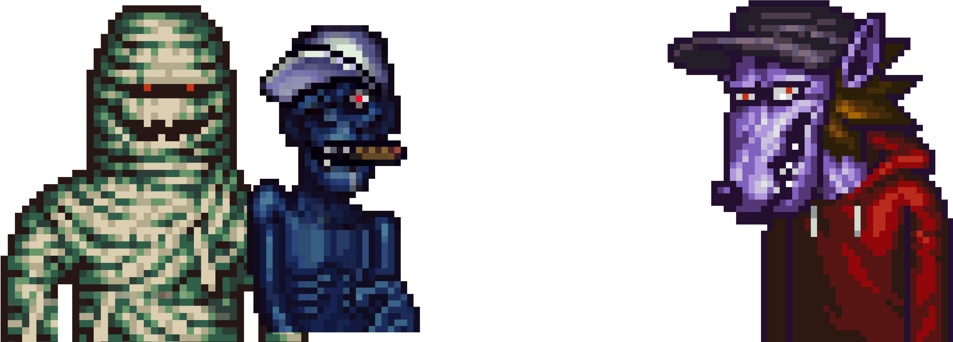We are four blockchain enthusiasts and collectors who first started digging into the NFT scene in early 2021. During that year, we collectively experienced more than enough rugpulls and FUD to put us six feet under. Only thing is, we forgot to stay dead. In fact, by the time we finally dug ourselves out one year later our portfolio was livelier than ever. Cryptopunks, Hashmasks, BAYC, Meebits, Fidenza and more - our stubborn refusal to stay down had paid some handsome dividends. And now we have awakened with a frightening hunger for more.